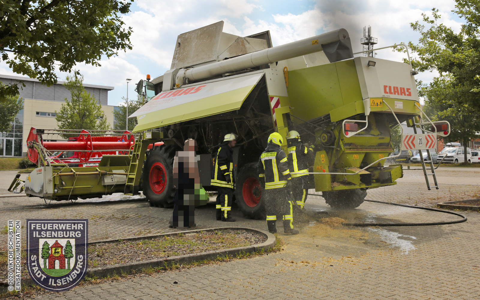 | Der Mähdräscher wurde teilentleert und abgelöscht und im Anschluss dem | ||