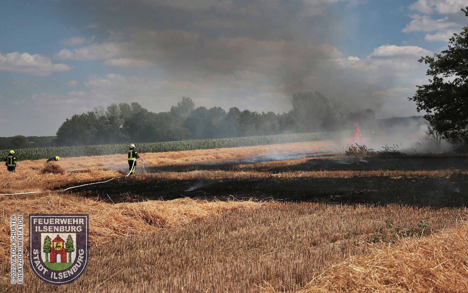 | Brand eines frisch abgemähten Kornfeld. Das Stoppelfeld wurde mit 4C-Rohren | ||